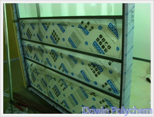 폴리카보네이트 복층판은 유리처럼 틀에 끼워넣는 방식으로도 많이 적용이 된다.