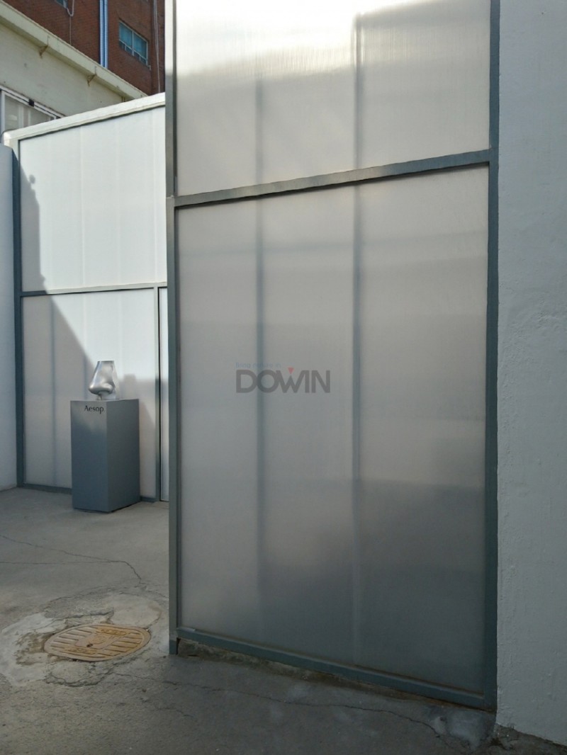 이곳 벽체 등에 폴리카보네이트 복층판이 사용되었습니다.