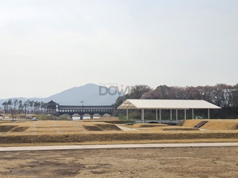 발굴하던 터 자리가 보호막으로 덮여 있습니다.